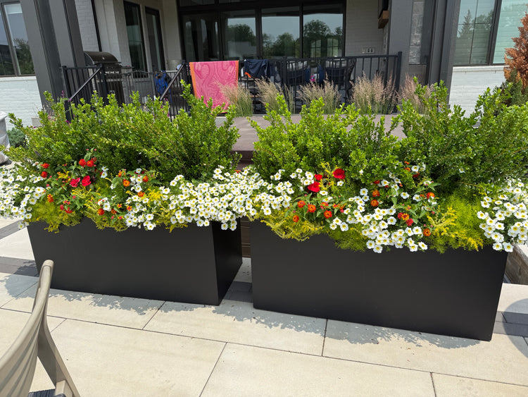 We know what you really want - beautiful pots on your doorstep or patio. Let us do the work! Our gorgeous finished containers are delivered and installed. Even if you have odd-sized containers we will customize a plan just for you.